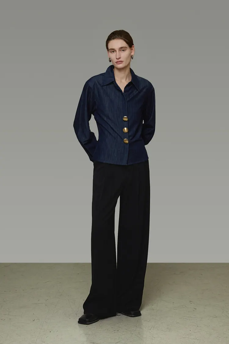 RUIFAN ist ein professioneller Hersteller und Lieferant von Damenbekleidung. Die Damen-Jeansbluse im Vintage-Stil besteht aus glattem Denim-Imitat, das weich und nicht steif ist. Die überschnittenen Schultern sorgen für einen schlankeren Effekt und die Metallknöpfe sorgen für einen Hauch von Eleganz. Es ist sowohl retro als auch exquisit und lässt sich problemlos mit verschiedenen Outfits kombinieren. Anpassungsoptionen für Farbe, Größe und Logo sind verfügbar.