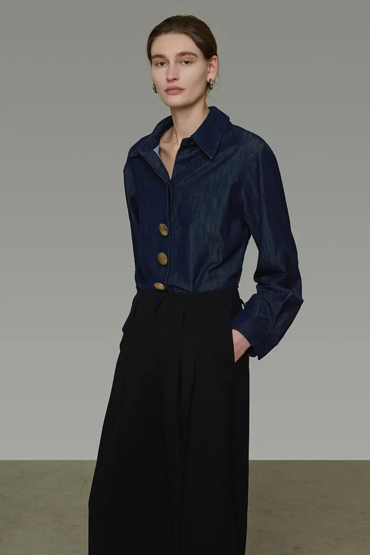 Vintage-Jeanshemd für Damen mit Metallknöpfen, schlichtes und exquisites, langärmliges, vielseitiges Oberteil